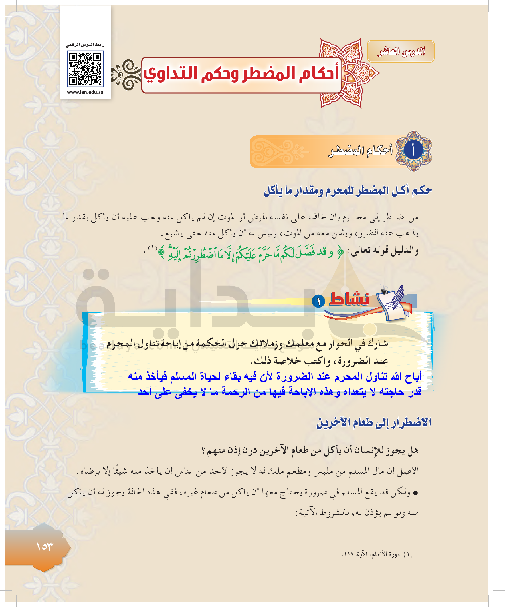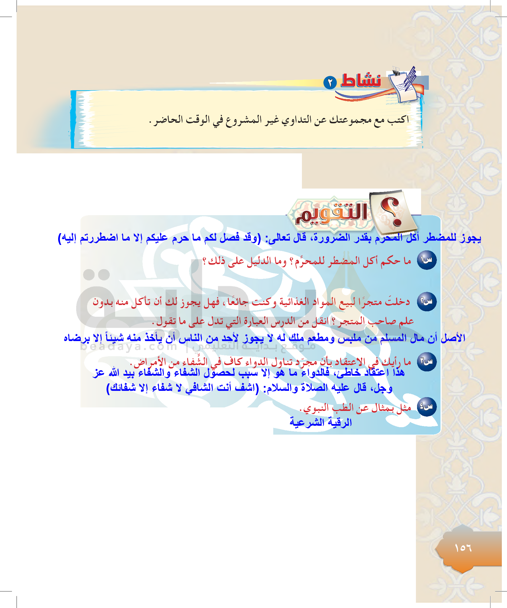 الفقه - الوحدة الخامسة: الاضطرار والتداوي