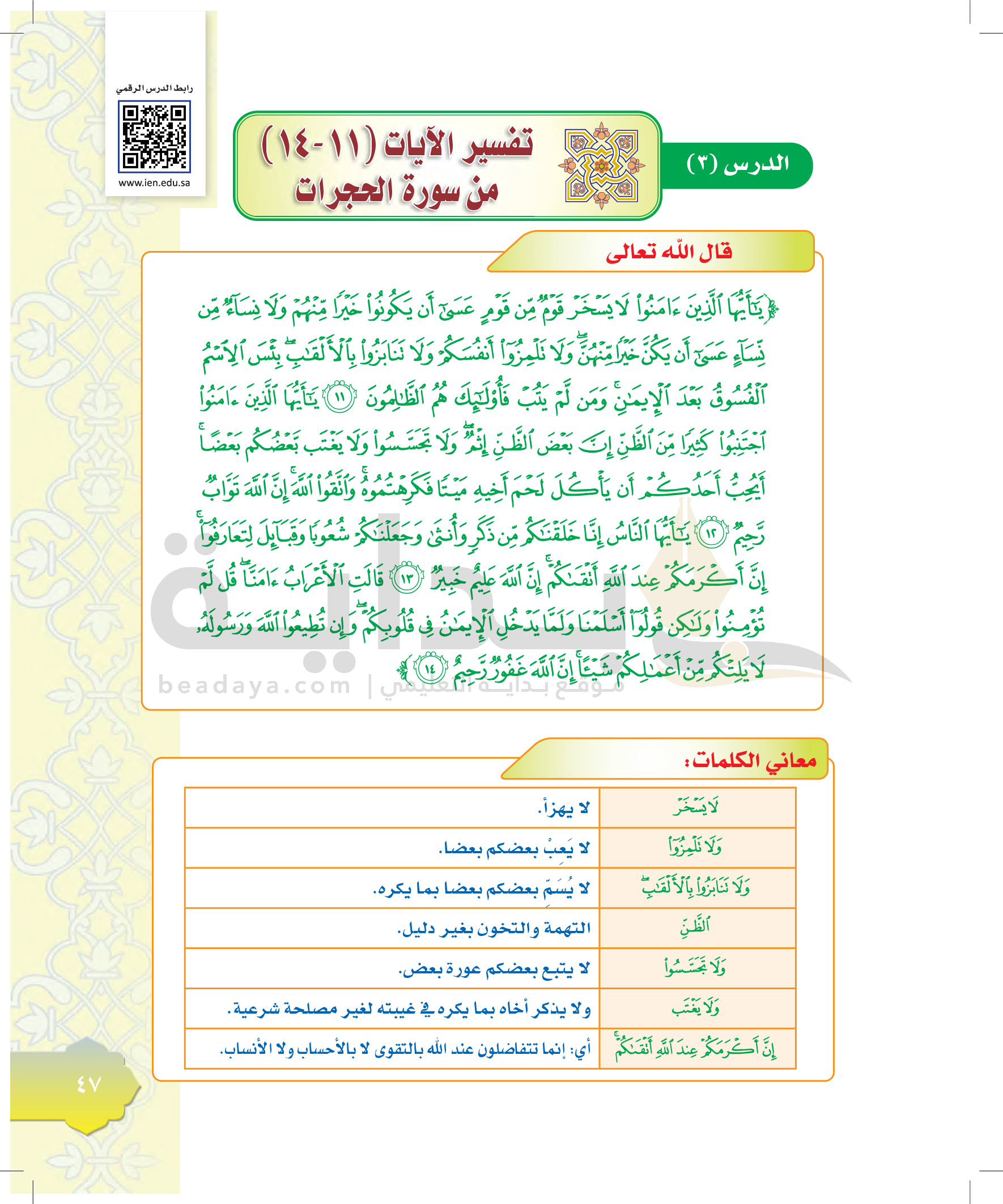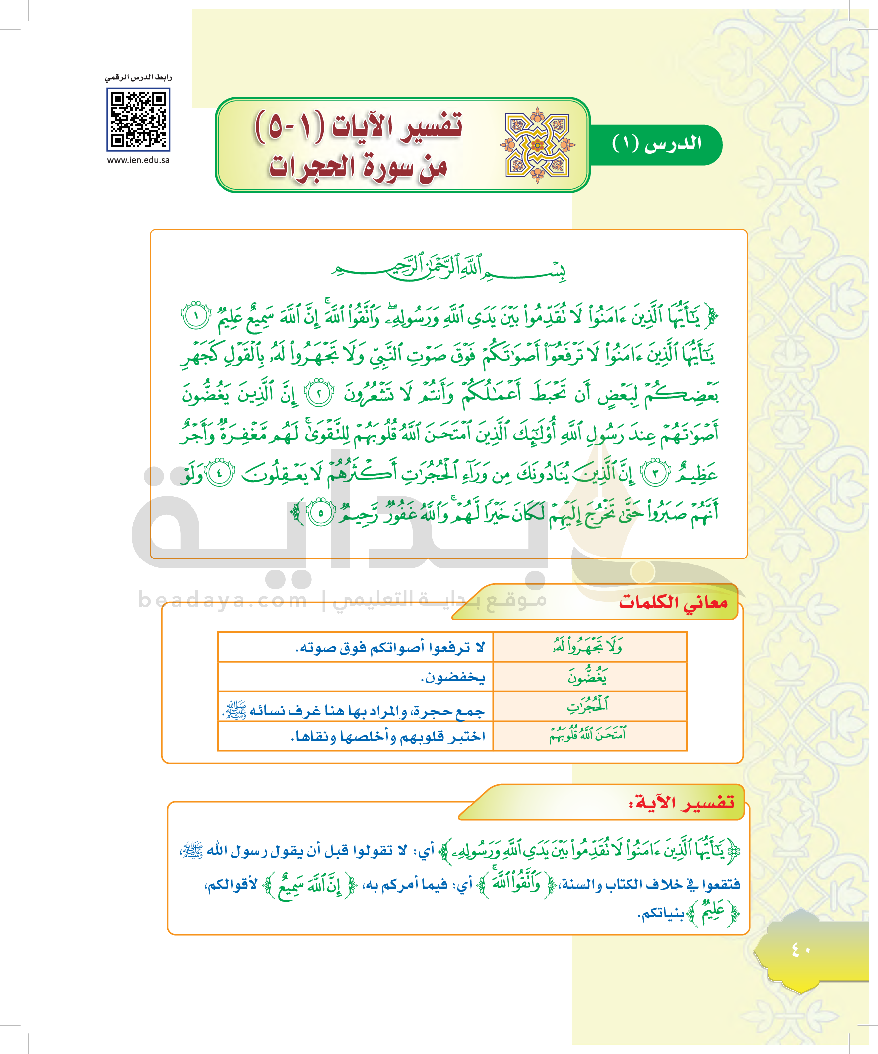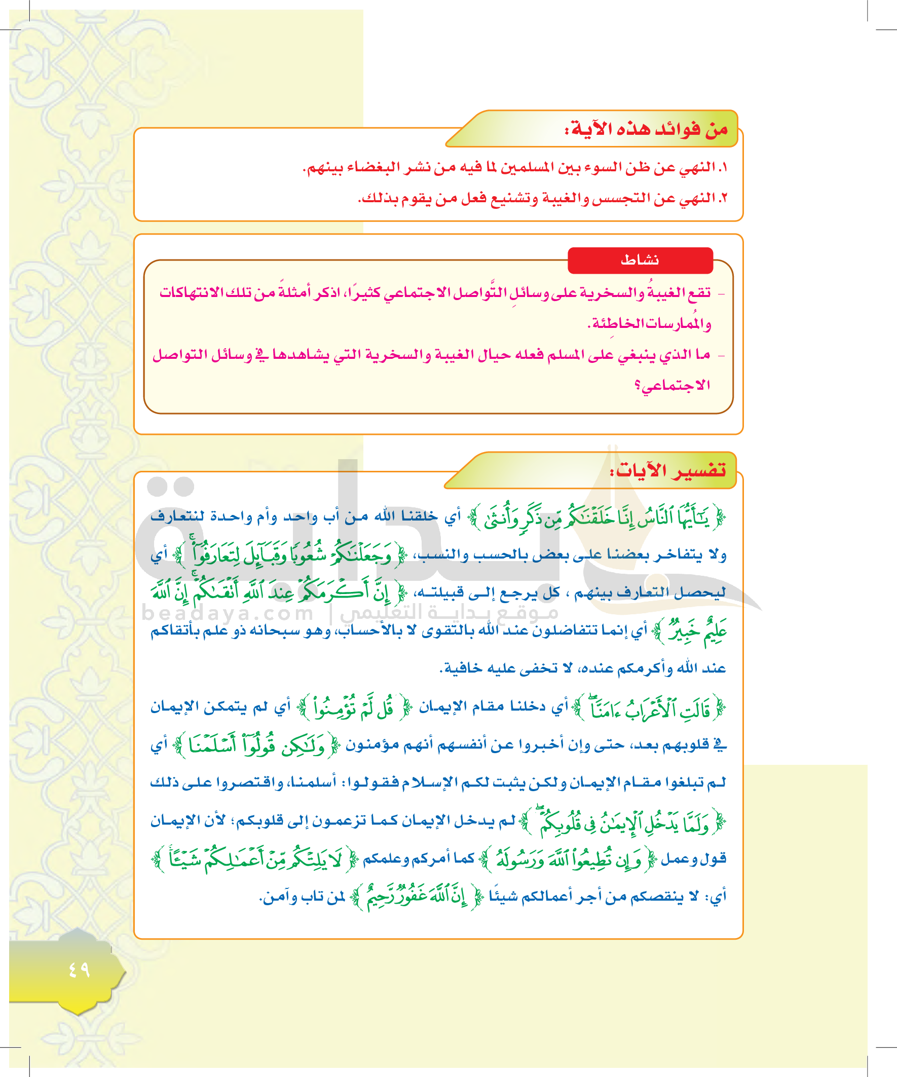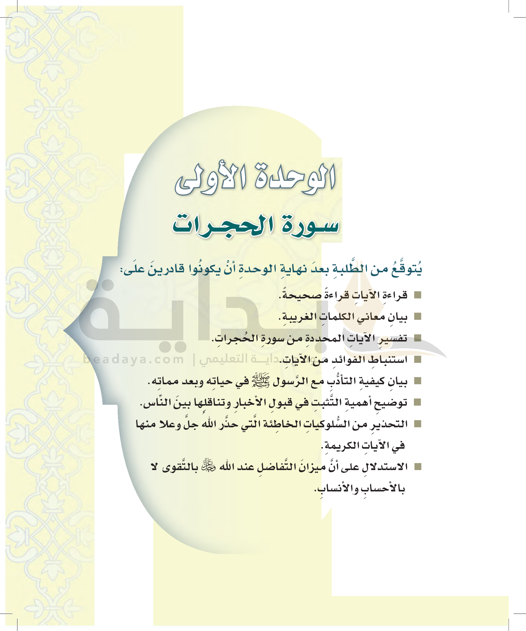 التفسير - الوحدة الأولى: تفسير سورة الحجرات