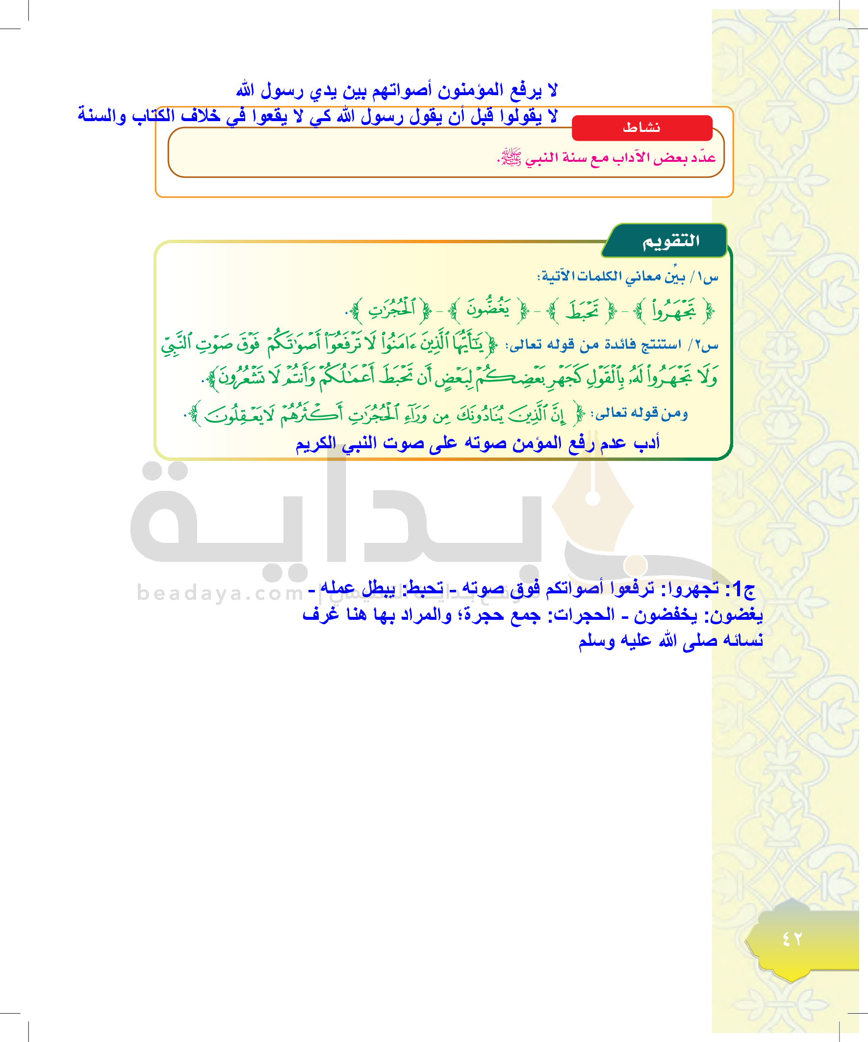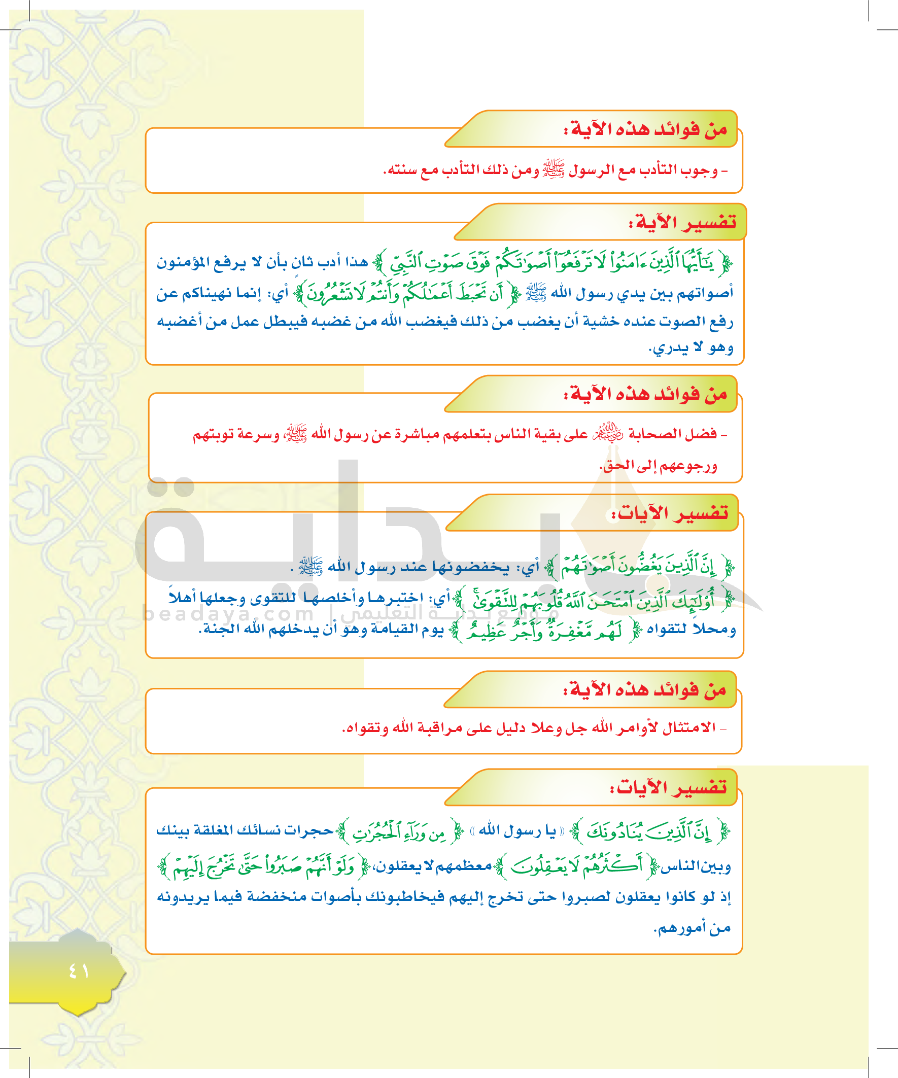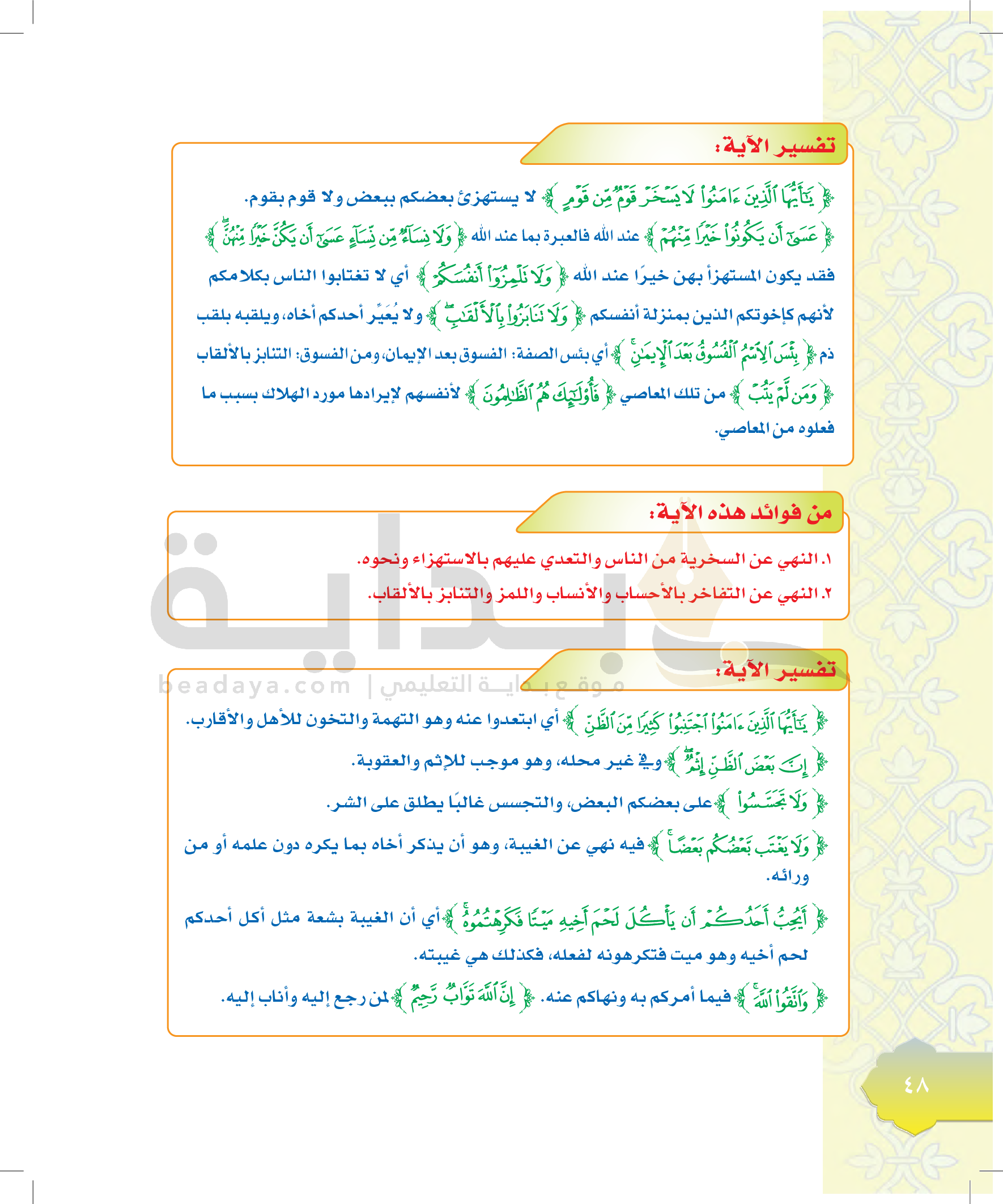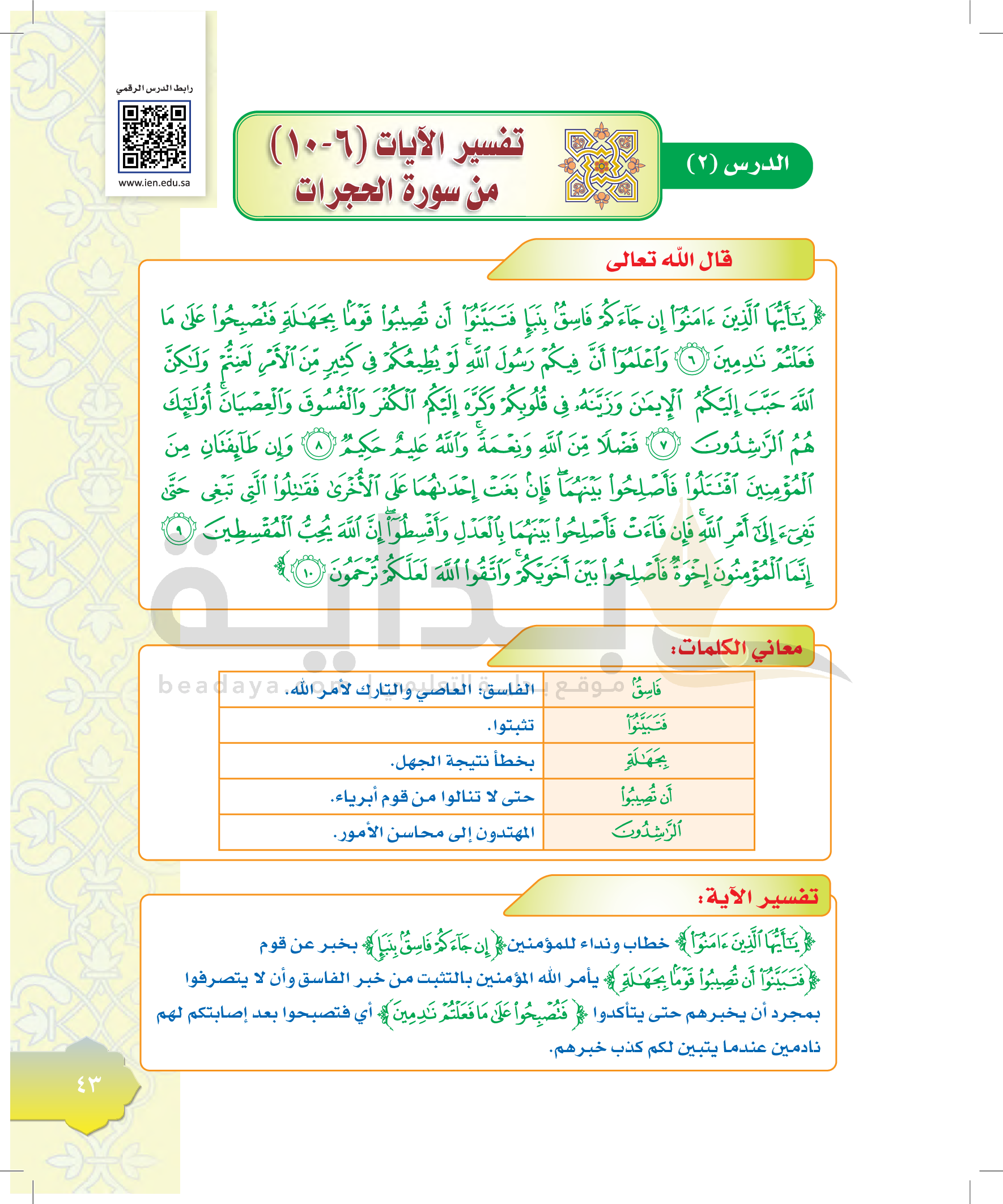 التفسير - الوحدة الأولى: تفسير سورة الحجرات