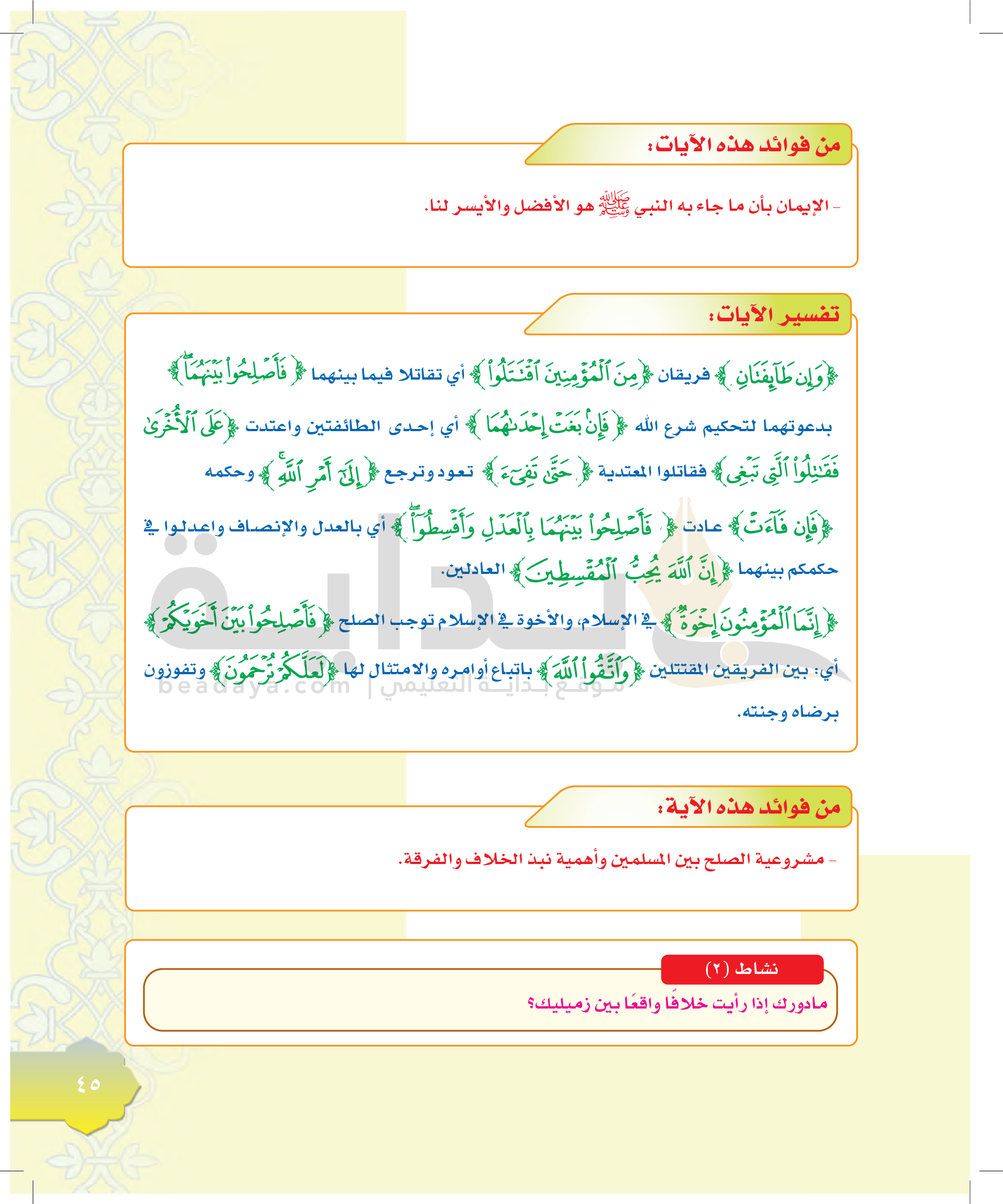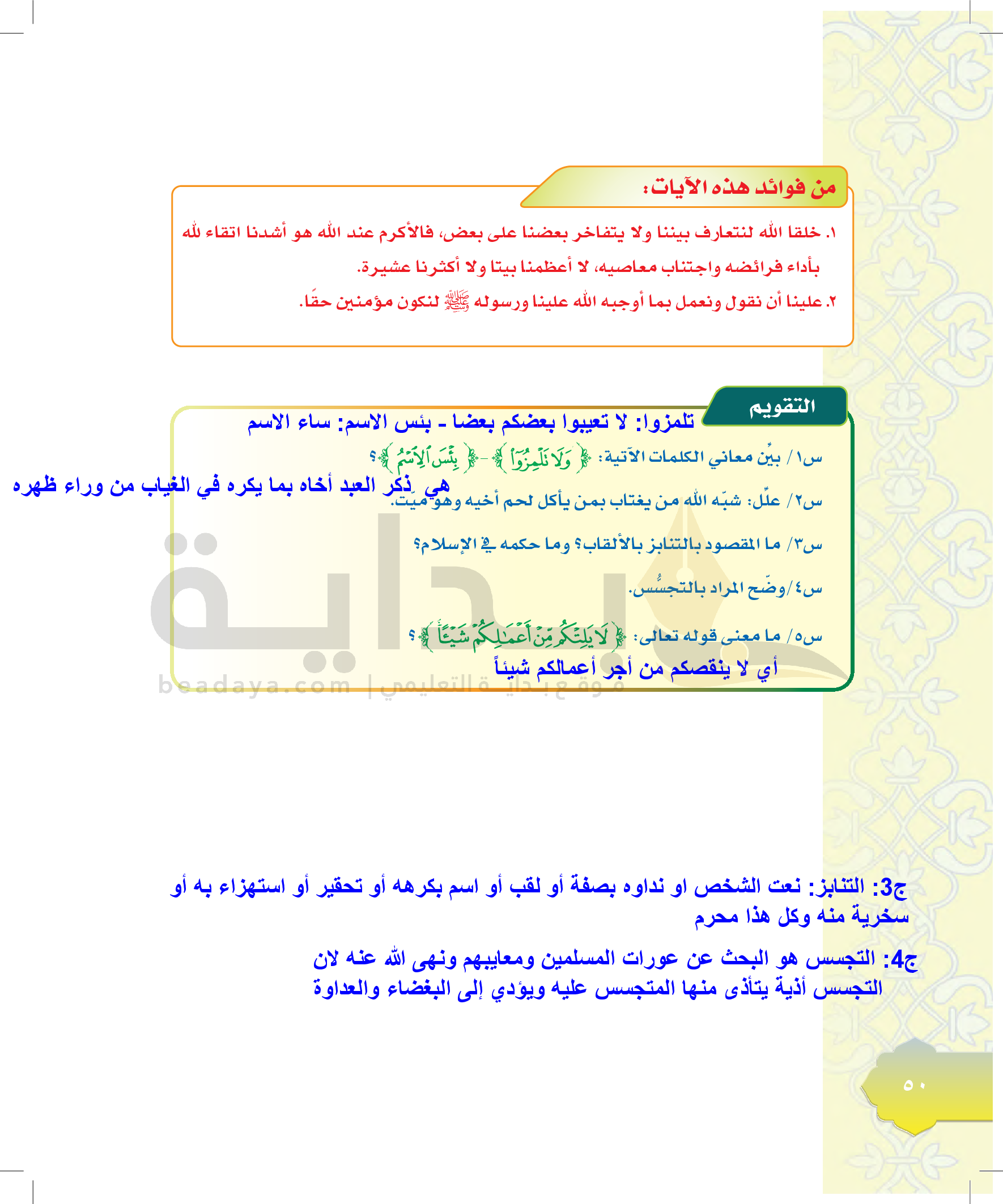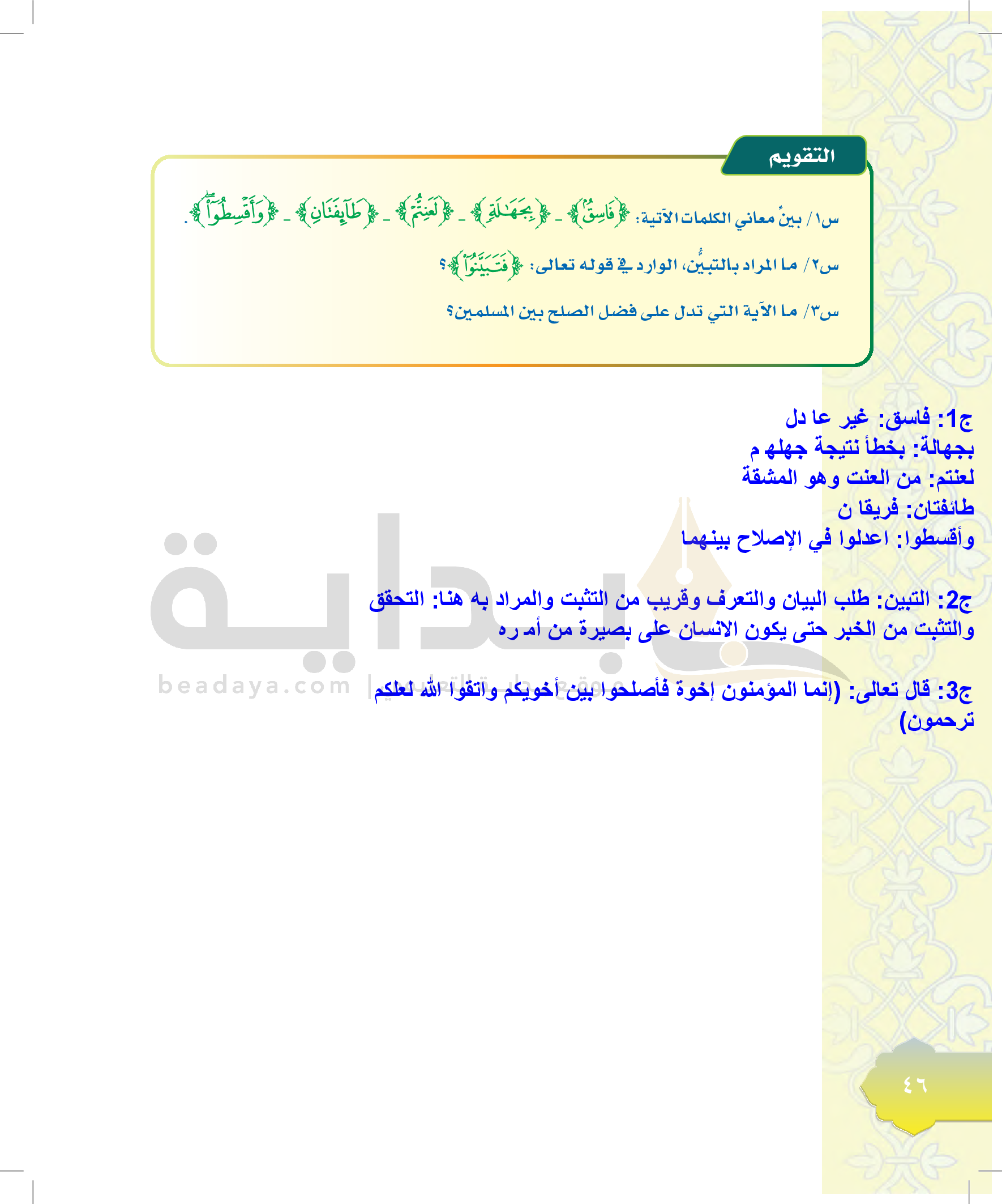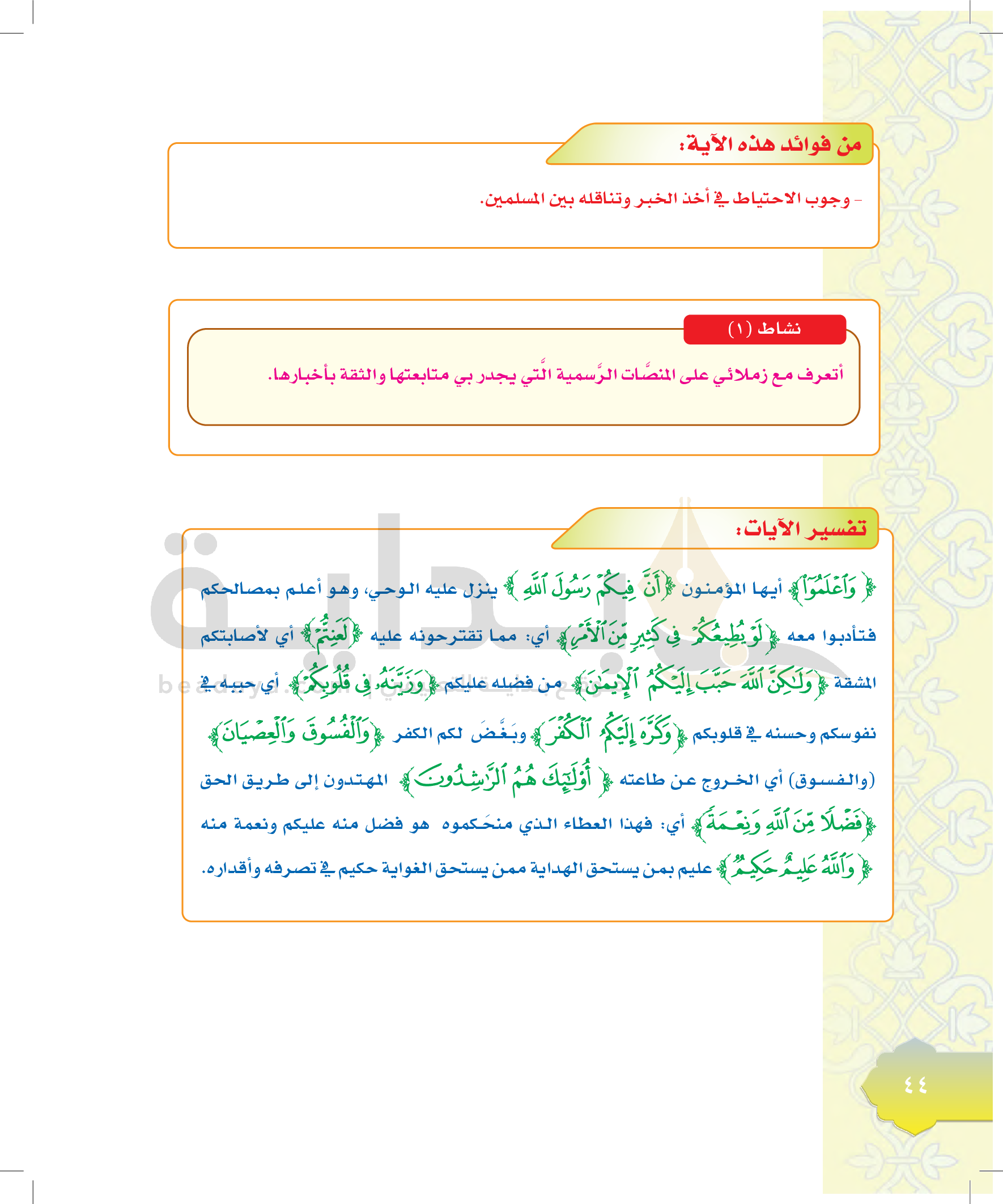 التفسير - الوحدة الأولى: تفسير سورة الحجرات