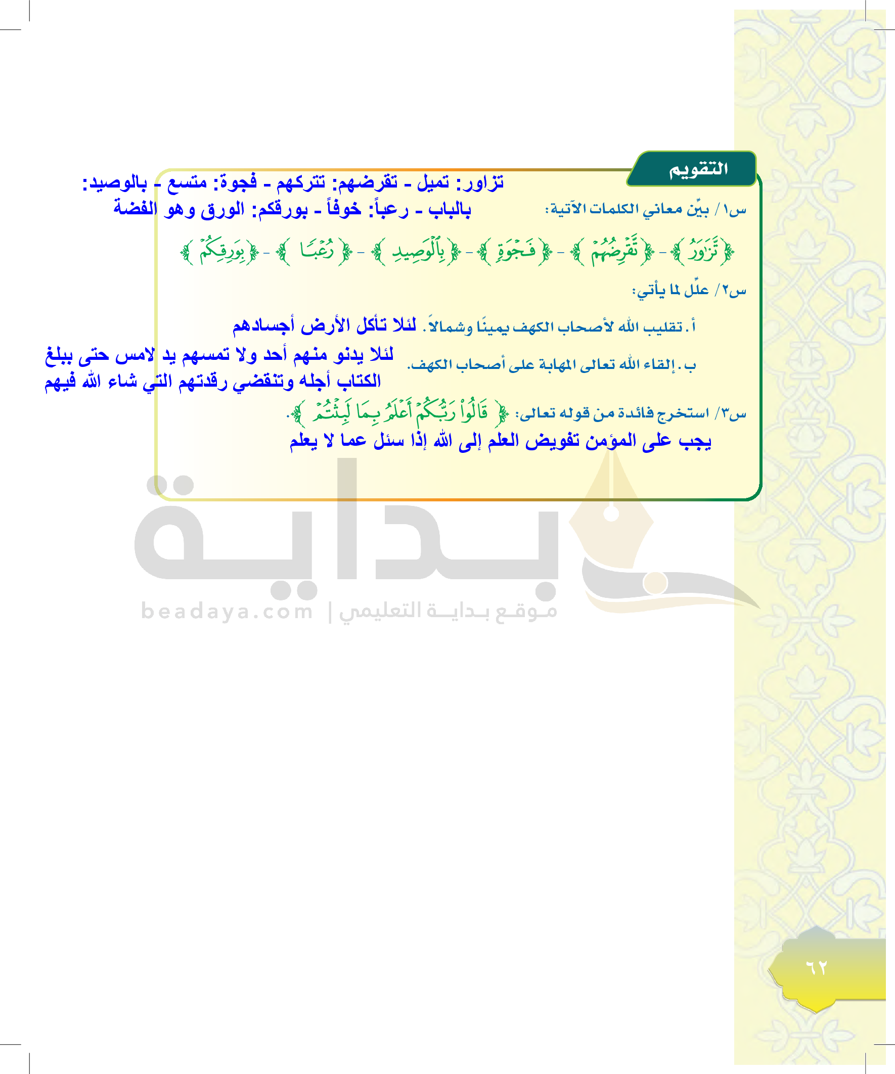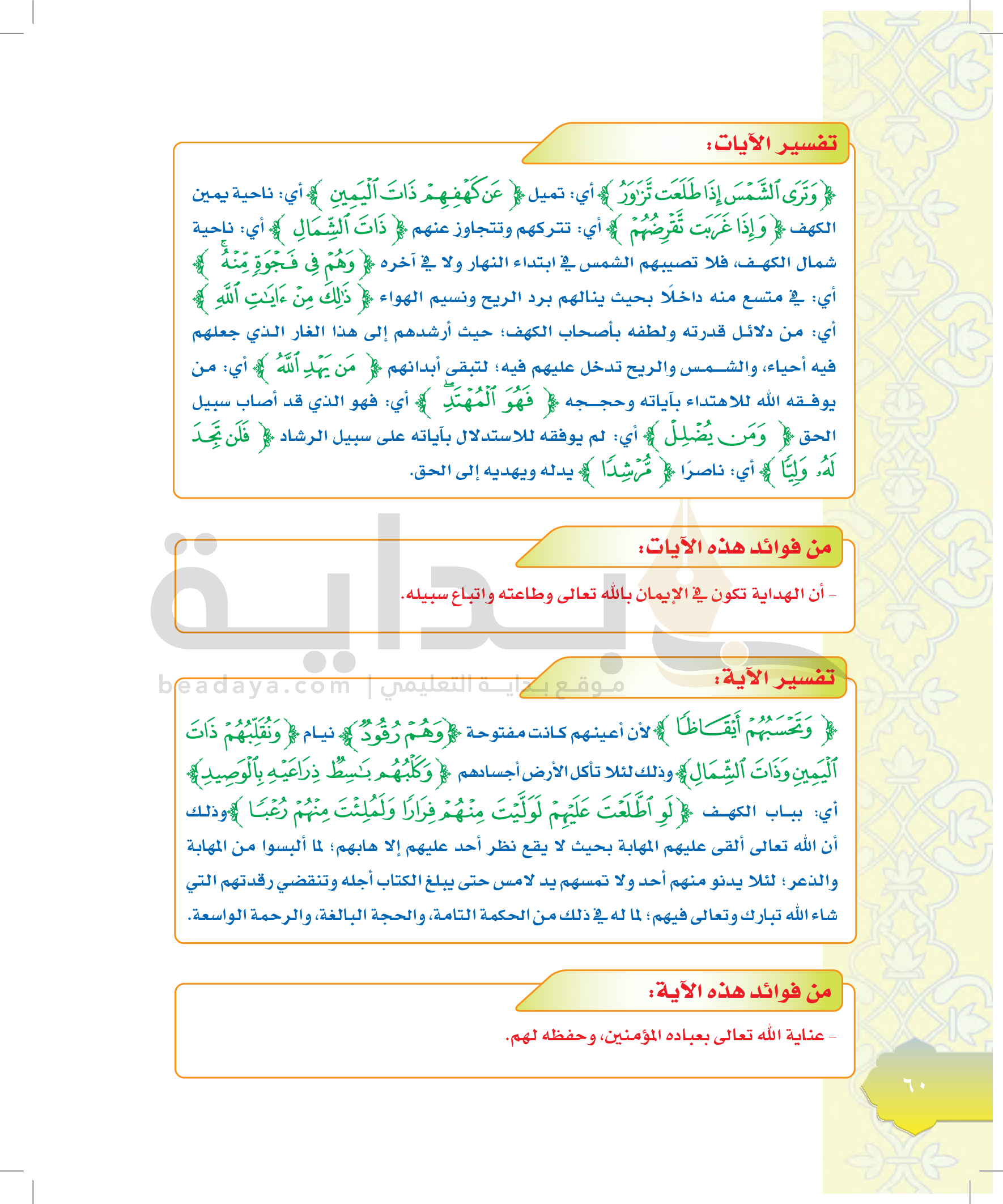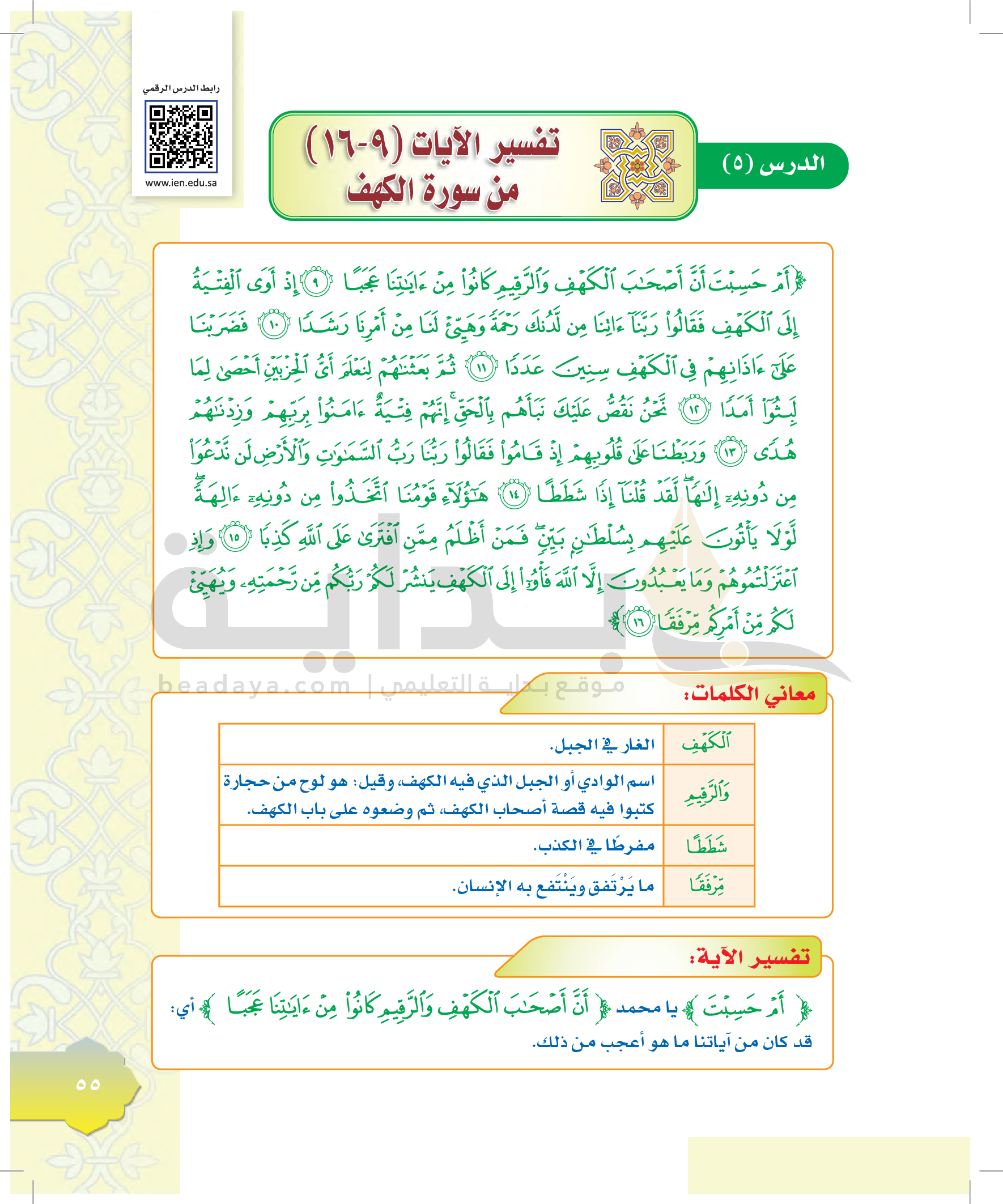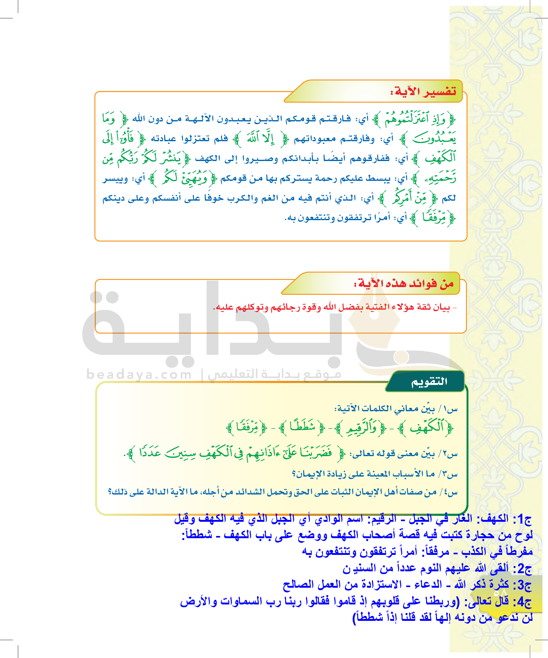 التفسير - الوحدة الثانية: تفسير سورة الكهف (قصة أصحاب الكهف)