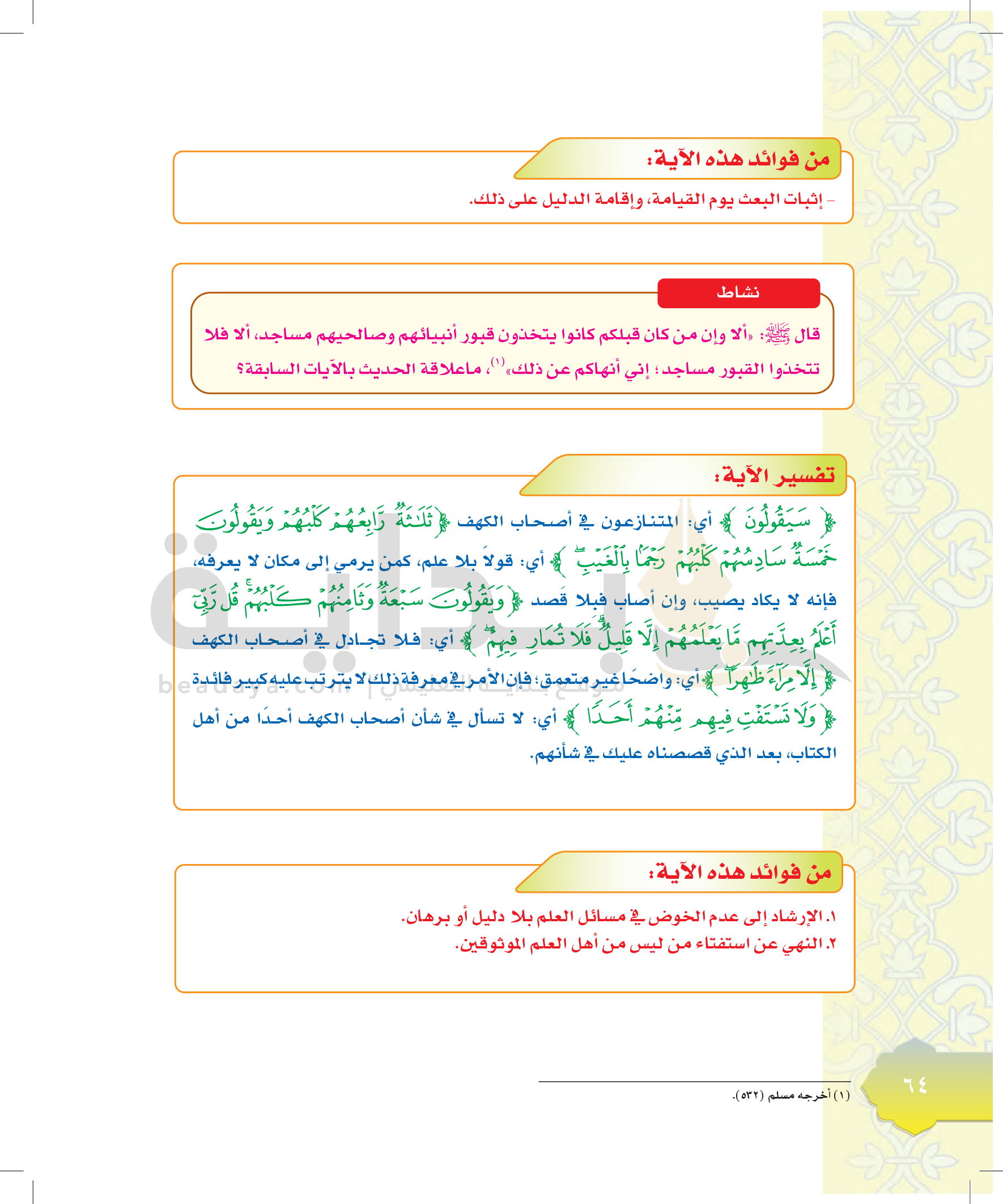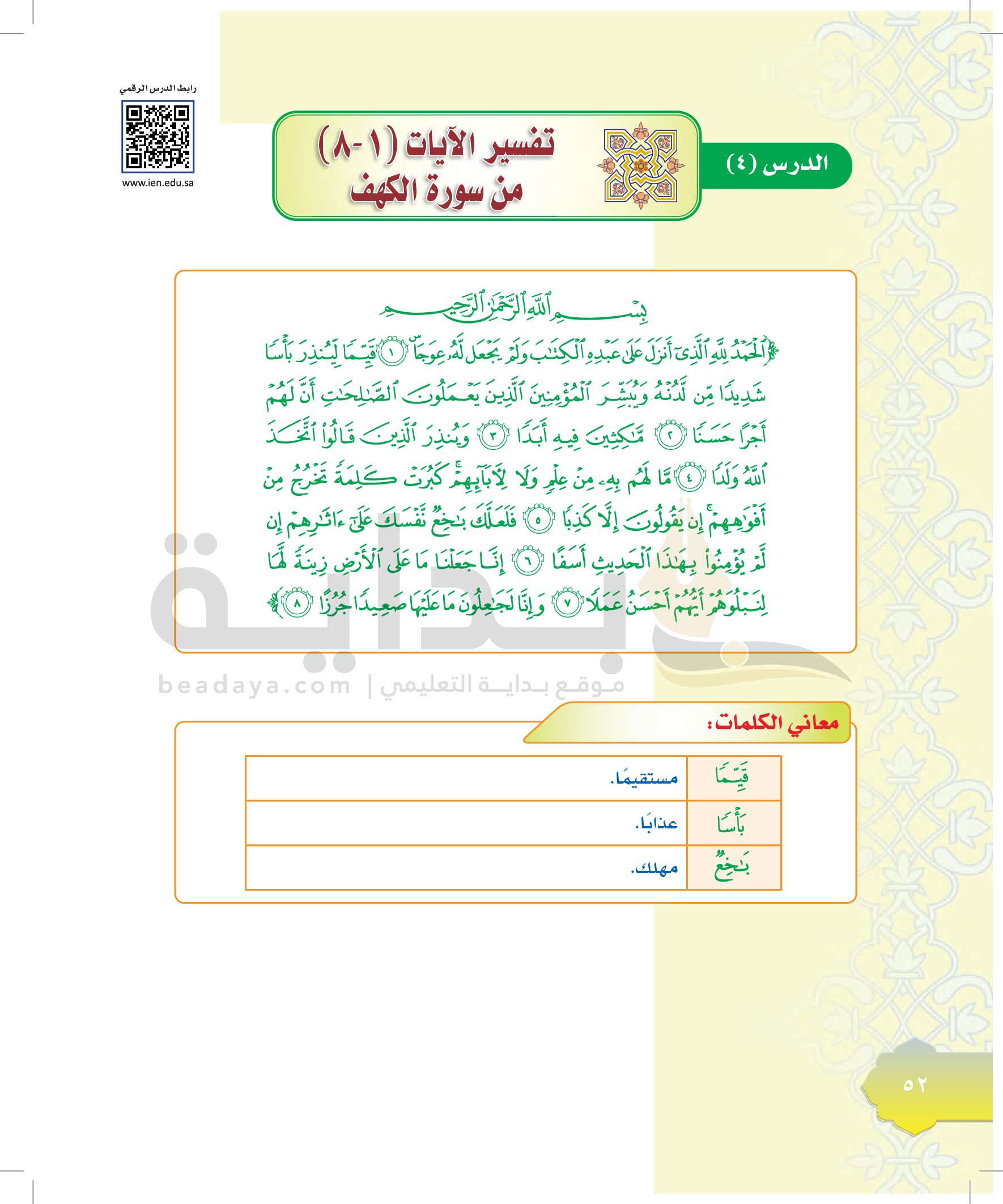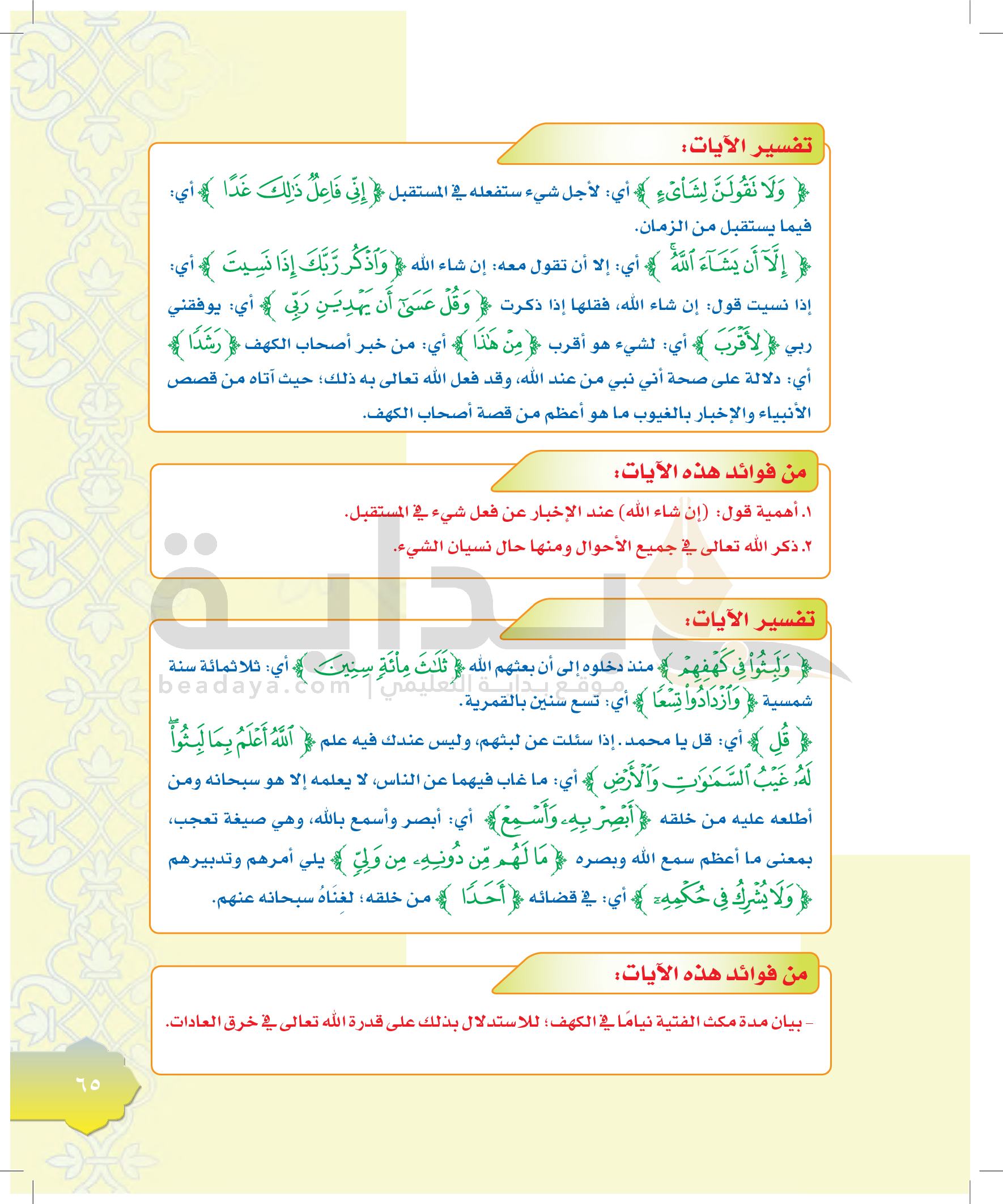 التفسير - الوحدة الثانية: تفسير سورة الكهف (قصة أصحاب الكهف)