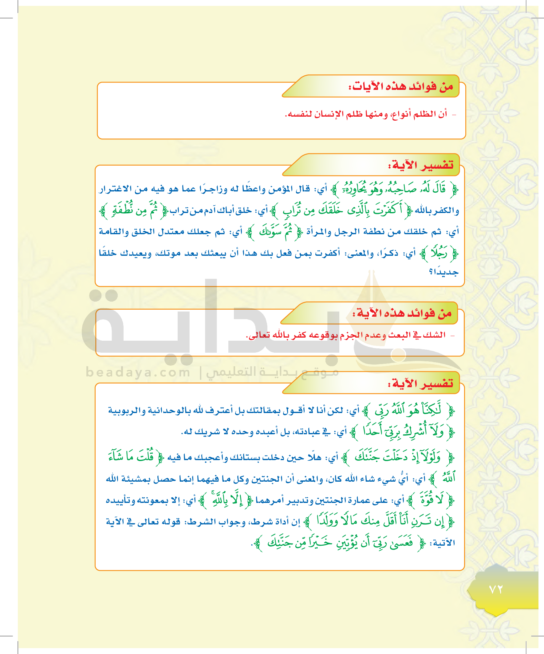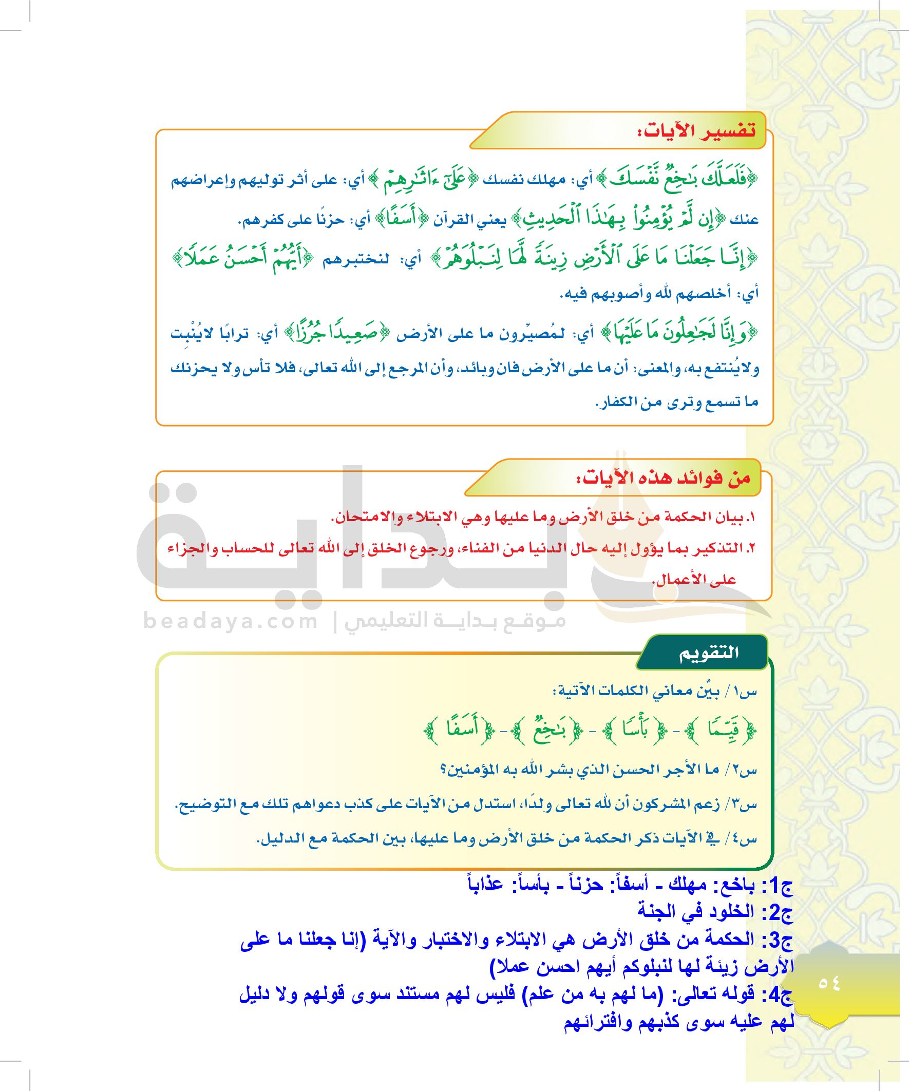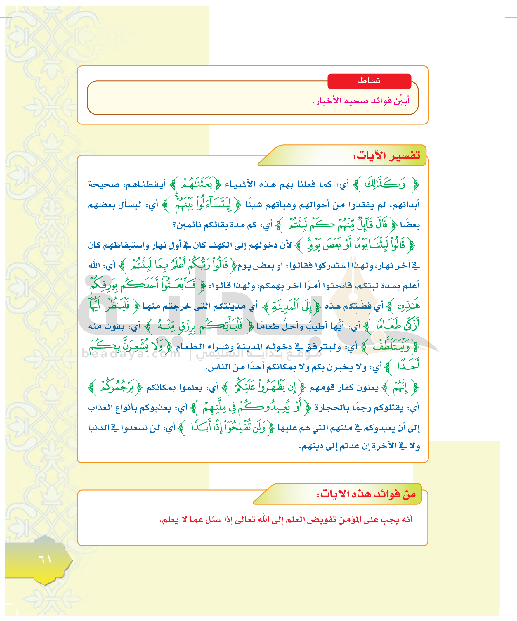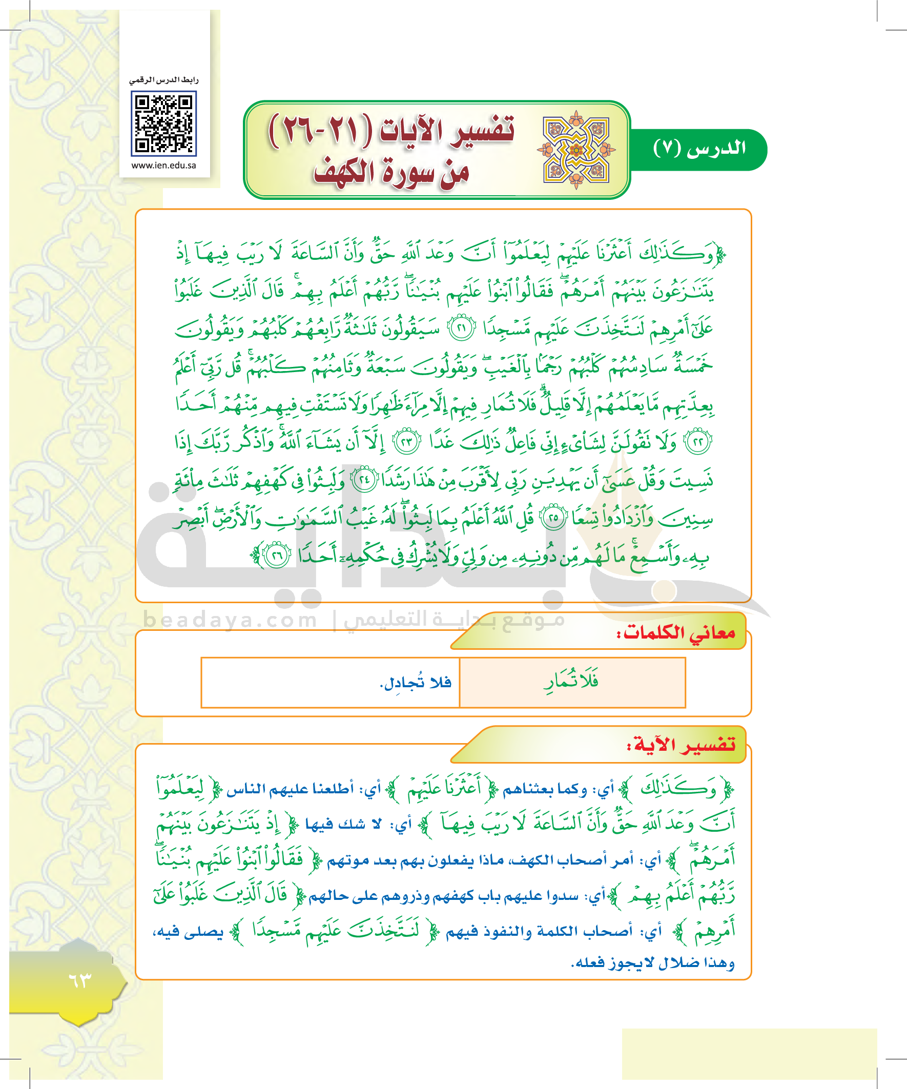 التفسير - الوحدة الثانية: تفسير سورة الكهف (قصة أصحاب الكهف)
