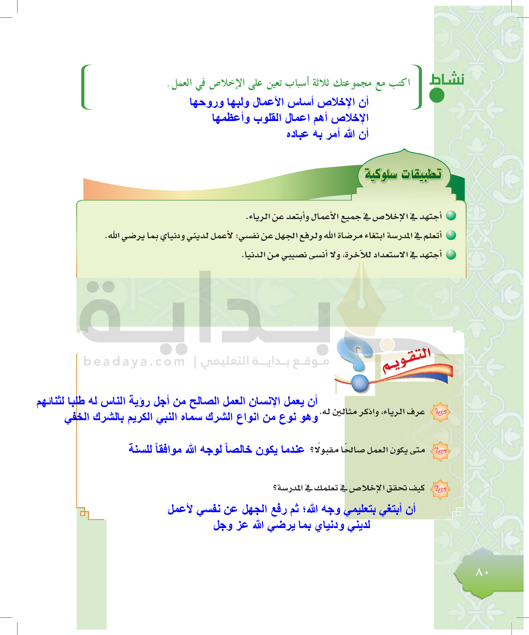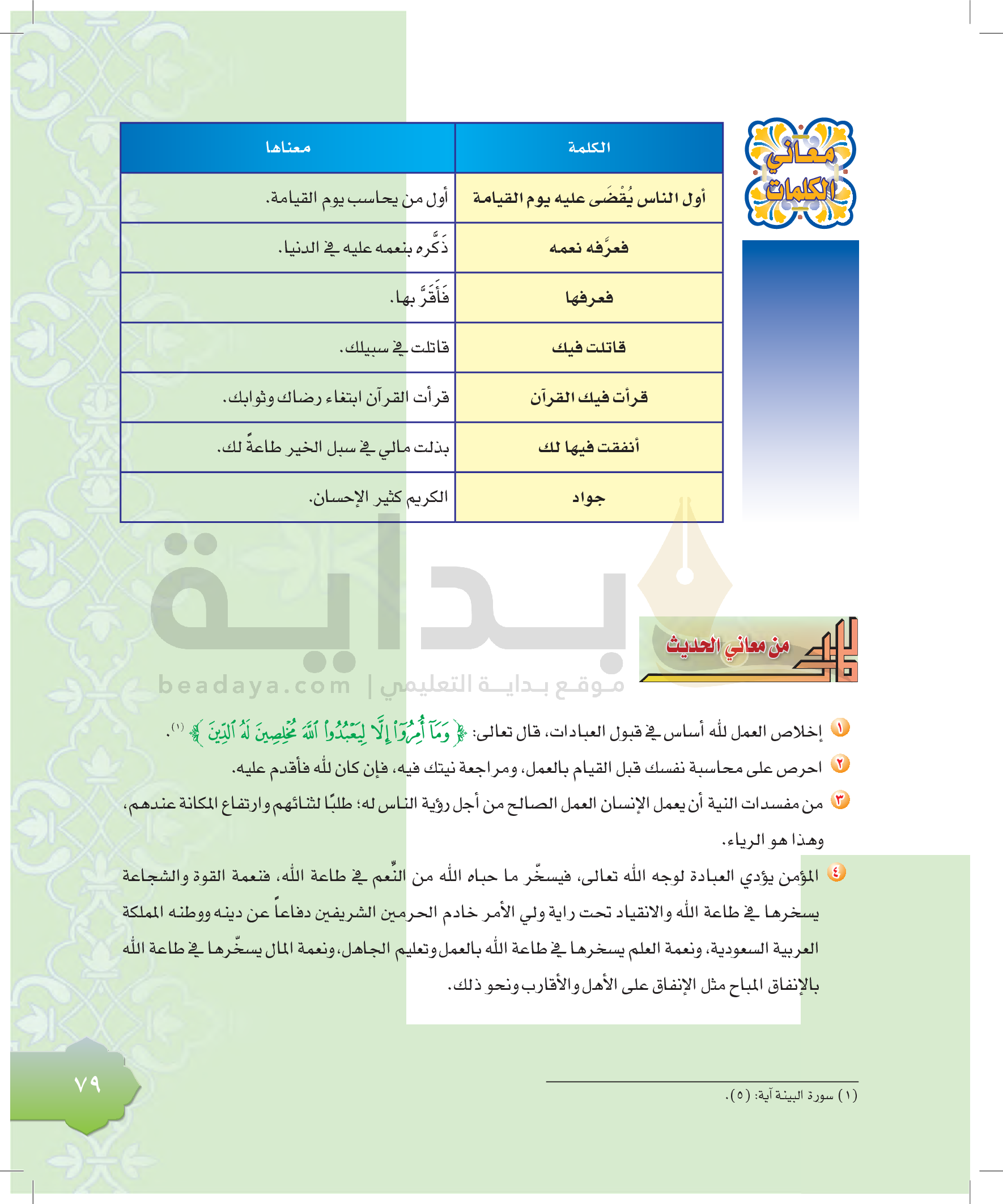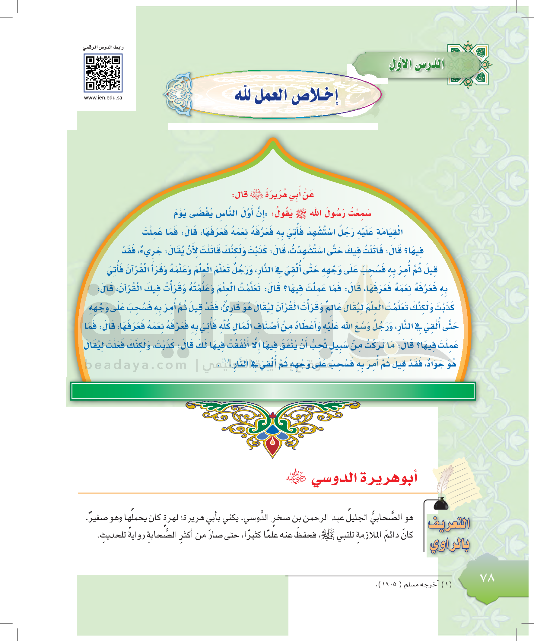 الحديث - الوحدة الأولى: من أعمال القلوب