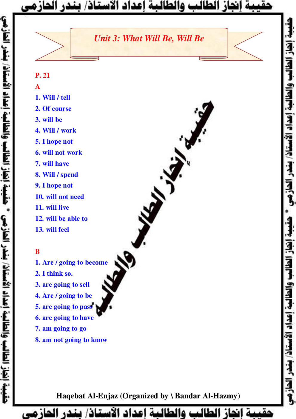 Unit 3: What Will Be, Will Be