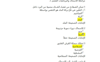 مراجعة فصل الأسماك أحياء2 محلول ثاني ثانوي