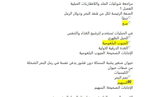 حل مراجعة فصل شوكيات الجلد واللافقاريات الحبلية أحياء الصف الثاني الثانوي الفصل الأول