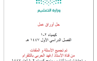 حل أوراق عمل كيمياء الصف الثاني الثانوي الفصل الأول