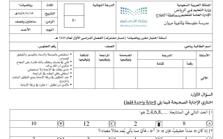اختبار رياضيات محلول أول ثانوي الفصل الأول