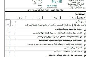 اختبار أحياء الصف الأول الثانوي الفصل الأول