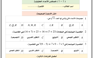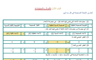 اختبار الباب الأول رياضيات غير محلول ثاني ثانوي