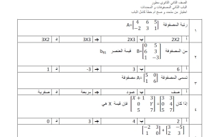 اختبار باب المصفوفات رياضيات الصف الثاني الثانوي الفصل الأول