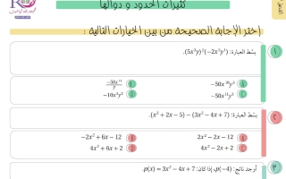 أوراق عمل كثيرات الحدود ودوالها رياضيات محلول ثاني ثانوي