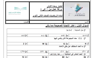 نموذج اختبار للوحدة الأولى رياضيات الصف الثاني الثانوي الفصل الأول