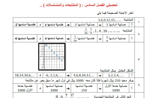 تحصيلي الفصل السادس (المتتابعات والمتسلسلات) رياضيات الصف الثاني الثانوي الفصل الثاني