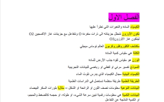 ملخص كيمياء الصف الأول الثانوي الفصل الأول