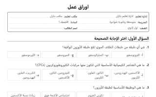 أوراق عمل كيمياء الصف الأول الثانوي الفصل الأول
