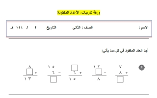 ورقة تدريبات (الأعداد المفقودة) رياضيات الصف الثاني الابتدائي الفصل الأول