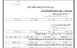 ورق عمل رياضيات الصف الثالث الابتدائي الفصل الأول