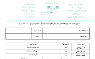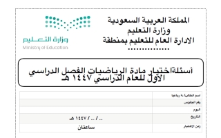 اختبار نهائي رياضيات ثالث ابتدائي الفصل الأول 1445