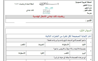 أسئلة الأشكال الهندسية رياضيات الصف الثالث الابتدائي الفصل الأول