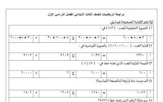 مراجعة رياضيات الصف الثالث الابتدائي الفصل الأول