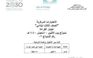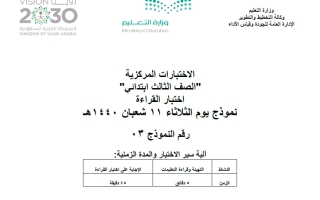 نموذج اختبار قراءة لغتي الصف الثالث الابتدائي الفصل الأول