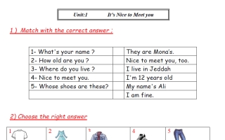 أوراق عمل الوحدة الأولى لغة انجليزية ثالث ابتدائي أ. أسماء