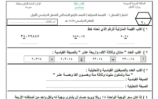 اختبار القيمة المنزلية رياضيات الصف الرابع الابتدائي الفصل الأول