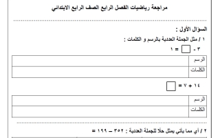 مراجعة الفصل الرابع رياضيات الصف الرابع الابتدائي الفصل الأول