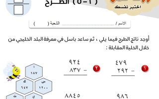 ورقة عمل درس الطرح رياضيات رابع ابتدائي