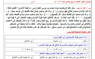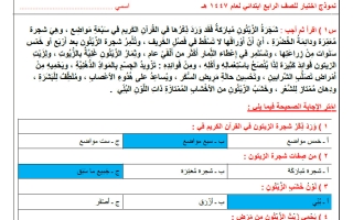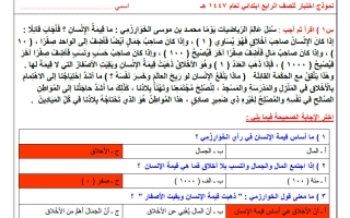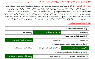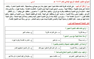 اجابة نموذج اختبار مركزي لغتي الصف الرابع الابتدائي الفصل الأول