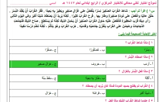 نموذج محاكي للاختبار المركزي لغتي الصف الرابع الابتدائي الفصل الأول