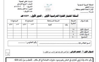 اختبار تشخيصي لغتي الجميلة رابع ابتدائي الفصل الأول أ. نورة الأحمري 1446