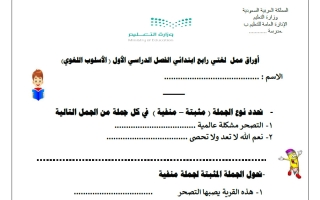 أوراق عمل لغتي رابع ابتدائي الفصل الأول