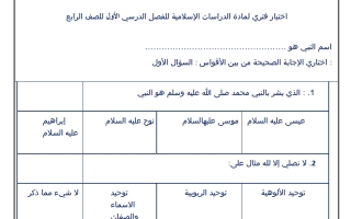 اختبار فقه للصف الرابع الابتدائي الفصل الأول