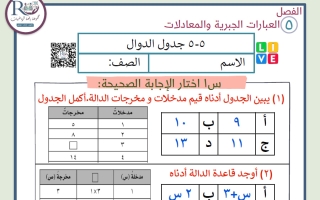 اختبار درس جدول الدوال رياضيات الصف الخامس الابتدائي الفصل الأول