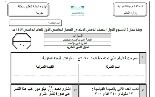 ورقة عمل للأسبوع الأول رياضيات الصف الخامس الفصل الأول