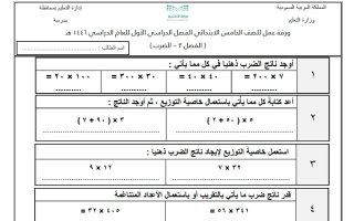 ورقة عمل فصل (الضرب) رياضيات الصف الخامس الابتدائي الفصل الأول