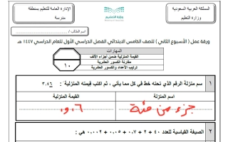 حل ورقة عمل للأسبوع الثاني رياضيات الصف الخامس الابتدائي الفصل الأول