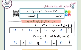 اختبار درس معادلات الجمع والطرح رياضيات الصف الخامس الابتدائي الفصل الأول