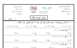 اختبار الوحدة الثالثة رياضيات الصف الخامس الابتدائي الفصل الأول
