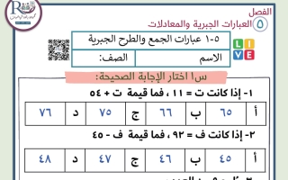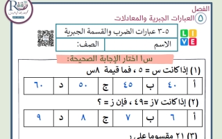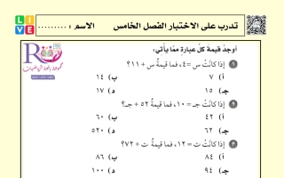 تدرب على الاختبار فصل (العبارات الجبرية والمعادلات) رياضيات الصف الخامس الابتدائي الفصل الأول