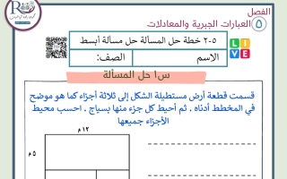 ورقة عمل درس القيمة المنزلية رياضيات خامس ابتدائي