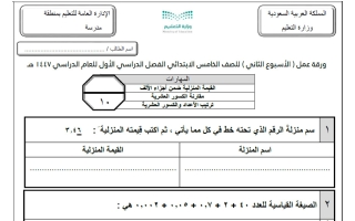 ورقة عمل للأسبوع الثاني رياضيات الصف الخامس الابتدائي الفصل الأول