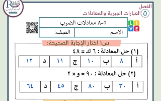 اختبار درس معادلات الضرب رياضيات الصف الخامس الابتدائي الفصل الأول