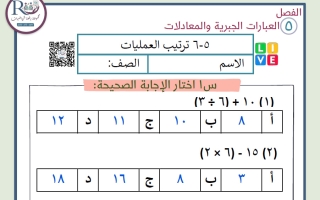 اختبار درس ترتيب العمليات رياضيات الصف الخامس الابتدائي الفصل الأول