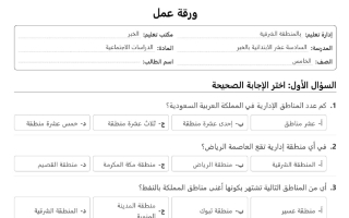 أوراق عمل دراسات اجتماعية خامس ابتدائي الفصل الأول
