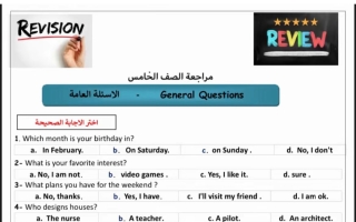 أوراق مراجعة لغة انجليزية للصف الخامس الابتدائي الفصل الأول