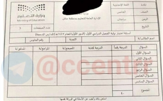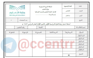 اختبار مركزي لغة انجليزية الصف الخامس الابتدائي الفصل الأول #حائل